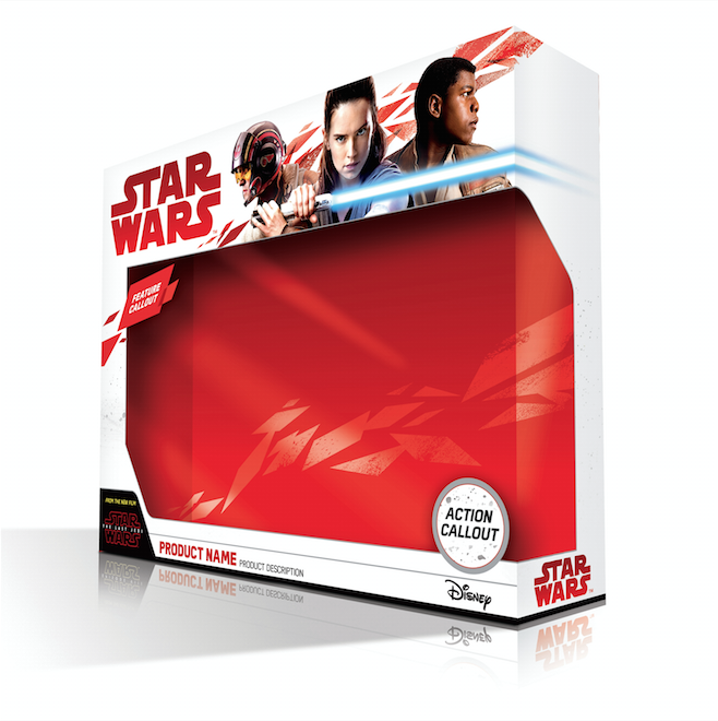 También se revela hoy una primera mirada en el empaquetado para “Star Wars: El último Jedi” productos que cuentan con héroes principales: Poe Dameron, Rey y Finn. El trío aparecerá en el envoltorio de Star Wars a partir del 1 de septiembre de 2017.