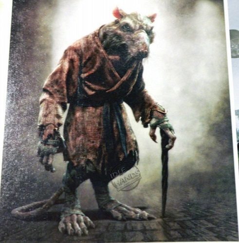Las fotos de Splinter y Shredder son arte conceptual, queriendo decir que a lo mejor no es asi como van a salir en la pelicula. Shredder me parece que si saldra como esta en esa foto pero no Splinter. Si se fijan en el trailer, lo poquito que enseñaron de Splinter es diferente a lo que sale en esta foto (Los bigotes largos y el traje que tiene puesto). La pelicula se ve chevere, lo unico que no me gusto fueron las narizes y los labios de las tortugas, se ven super raras. Pero esperare a verla antes de decidir.