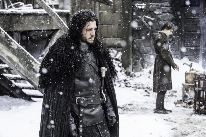 Pasamos un montón de tiempo en el norte, el cual está cubierto por una nevada constante (el invierno está llegando definitivamente) empezando con Jon Snow montando su caballo para irse junto a Tormund Giantsbane en la misión de convencer al resto del ejercito de Mance a unirse a la Orden para luchar contra la larga noche que se acerca y los White Walkers con ella. Allisor volvió a protestar, y entre miradas molestas de sus compañeros, Jon recibió de Sam una daga de dragonglass y un abrazo. Podría ser la última vez que se vean.