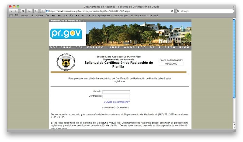 Como dice Jaime, “el mismo perro con diferente collar”. Aunque cogiendo el caso de la pagina del Dpto. de Hacienda, ha mejorado bastante. Hay muchos mas servicios en linea de los que imagine que pudiesen haber. No tanto como para llegarles al IRS, pero tienen buenos servicios. Creo que de lo que hablas de poder conseguir Certificaciones de Deuda, de Radicacion de Planillas, etc., es muy bueno, ya que a veces uno pierde mucho tiempo en filas para una hoja de papel, en la colecturia o en el Dpto. de Hacienda. Por lo menos en mi profesion suelo usar mucho estas paginas gubernamentales, tanto para buscar informacion como para buscar formularios y hacer transacciones. Es muy bueno saber que muchas de las transacciones ya se pueden hacer por la colecturia virtual en vez de tener que ir a hacer filas kilometricas en Hacienda.