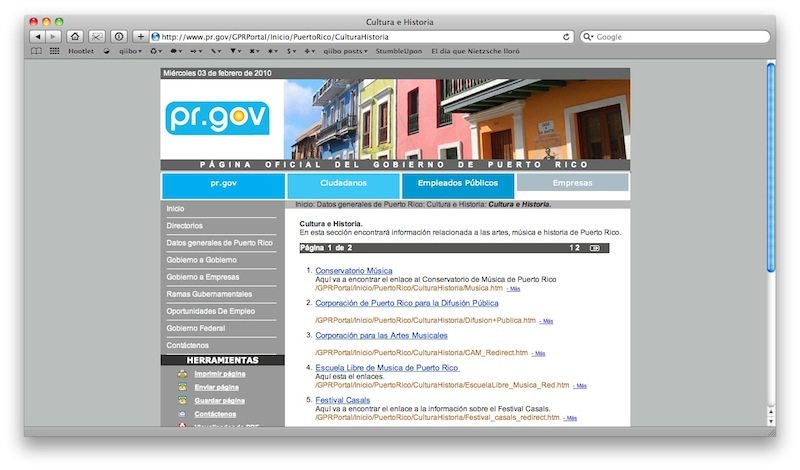 PR.Gov es una iniciativa del Gobierno muy buena aunque creo que llega un poco tarde si tomamos en cuenta que ya estamos en la primera mitad del siglo 21. Aún así es de aplaudir y espero que esta administración y futuras no la dejen caer y la mantengan siempre en condiciones.