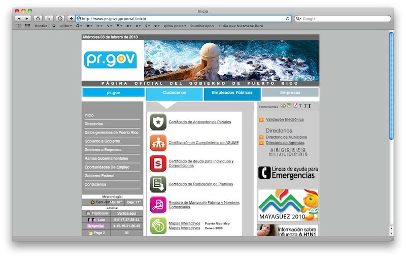 Recientemente el Gobernador de Puerto Rico, Luis Fortuño, dió su mensaje de situación de estado. En el mismo se tocaron varios puntos muy importantes y otros no tanto. Uno que me llamo la atención en particular y el cual según el Gobierno nos ahorrará unos cuantos dólares, es el anuncio de la nueva página oficial del gobierno de Puerto Rico, pr.gov.