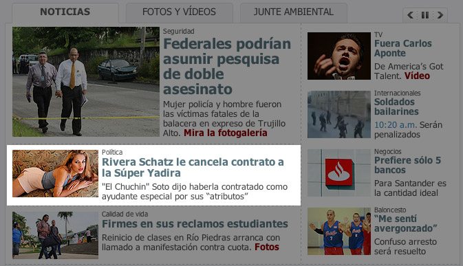 Actualizaciión 2: La noticia de Schatz no está arriba a las 11:23 am, pero sí aparece el titular. Aquí la foto.