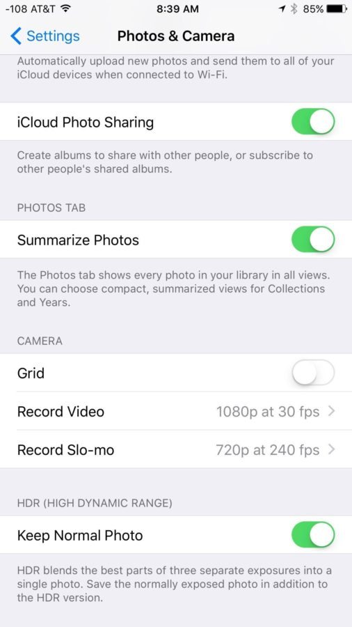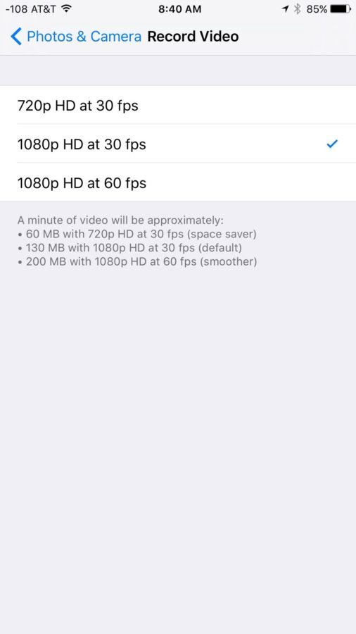 Si tiendes a grabar muchos vídeos con tu iPhone, iOS 9 ahora te permite bajar de 60 a 30 frames por segunda para que así puedas ahorrar espacio de almacenamiento en tu teléfono. Para poder ajustar la resolución de la cámara, solo tendrás que dirigirte a Settings > Photos & Camera > Record Video.