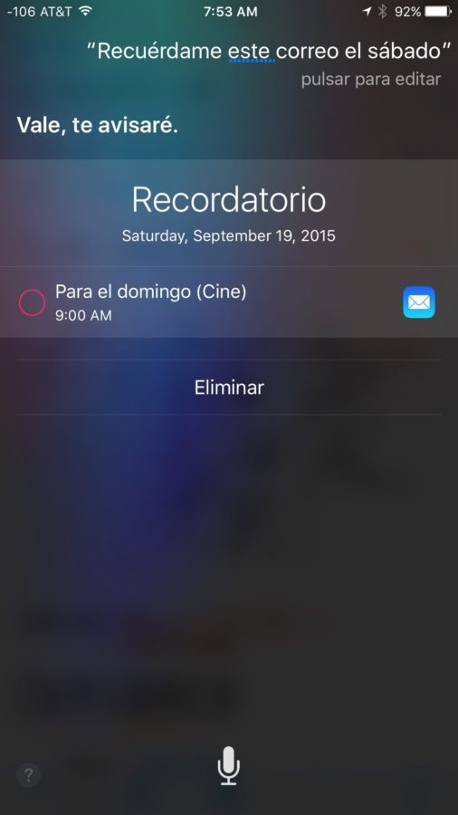 Una de mis opciones favoritas es pedirle a Siri que me recuerde sobre lo que tengo en pantalla al momento. Por ejemplo, si estoy leyendo un email que necesito recordar más adelante, solo le digo a Siri “recuérdame este correo el sábado” y automáticamente lo anotará en la aplicación de Reminders o recordatorio. También puedes pedirle que te muestre las últimas fotos que tomaste en el party de anoche, aunque para esto, Siri y tu iPhone deberán tener el mismo idioma.