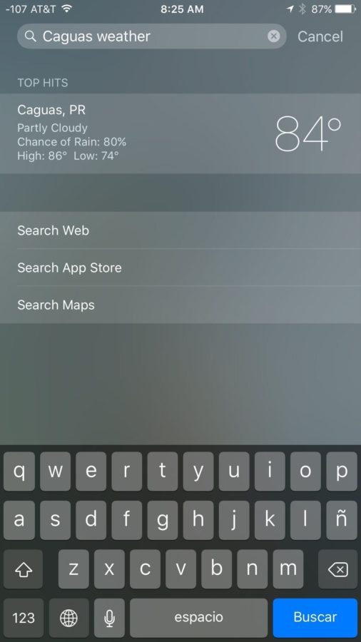 A mano izquierda del Home Screen hay una nueva pantalla con contactos, aplicaciones y noticias. Se trata de Spotlight + Siri. Desde aquí, puedes hacer varias cosas muy interesantes como buscar los resultados de tu equipo favorito, hacer cálculos de computadora o hasta verificar el clima del lugar donde te encuentras. Para esto solo tienes que escribir en la barra de búsqueda, tu equipo, hacer el cálculo que necesites corroborar o escribir, por ejemplo, San Juan weather o clima, dependiendo el idioma que tengas escogido en tu teléfono.