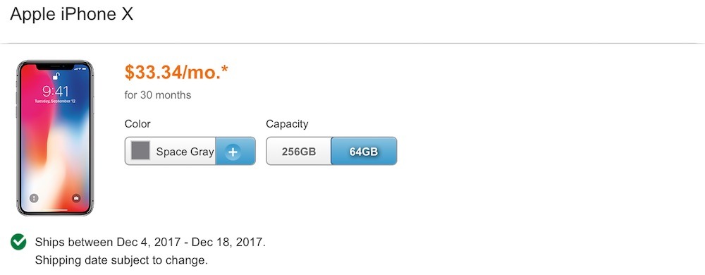 Con los carriers pasa algo similar. Al momento de este escrito, AT&T tiene fechas de entregas que van desde el 4 al 18 de diciembre para el modelo Space Gray (el más solicitado en estos momentos) tanto en 64 como en 256GB. Por su parte, el modelo Silver tiene fechas disponibles aún que van desde el 2 hasta el 10 de noviembre.