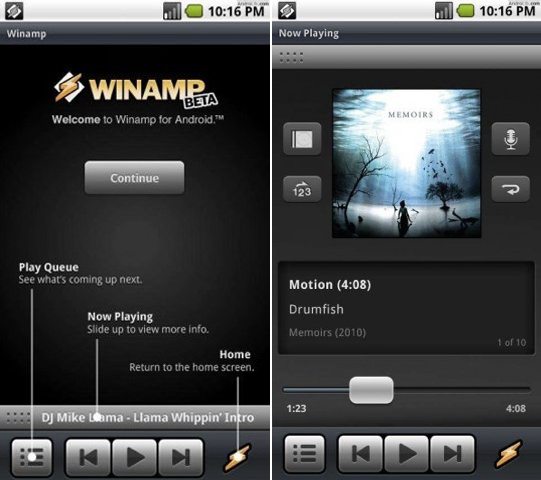 Winamp para Android aún está en fase beta, pero es funcional. Sólo necesitarás tener Eclair, Android 2.1 en adelante.