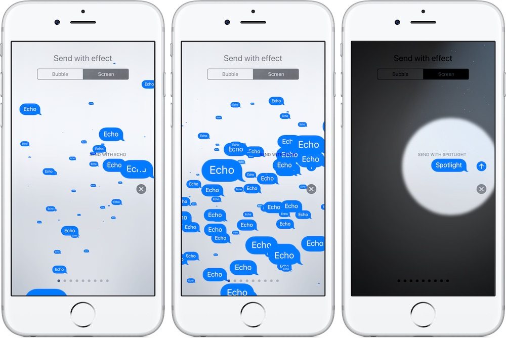 Con iOS 11, Apple introdujo una serie de novedades que no han dejado indiferente a nadie. Pero el nuevo sistema operativo móvil del iPhone y iPad esconde muchas otras novedades. Muchas de las aplicaciones del sistema recibieron grandes cambios, en otras fueron mínimos. Uno de estos lo fue Messages, la cual, aparte de los cambios estéticos, también recibe dos nuevos efectos para nuestros mensajes, “Echo” y “Spotlight”.