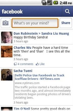 La comunidad de androides está creciendo a un ritmo bastante acelerado y muchos desarrolladores y páginas web han comenzado a mirar la plataforma Android con buenos ojos. Una de éstas es la red social más grande del mundo. En el día de ayer la aplicación nativa de Facebook para Android recibió una importante actualización.