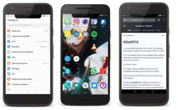 La aplicación en cuestión se llama XOutOf10, según vemos en Fandroid. Su función no es otra que imitar los sensores y demás componentes que vemos en el iPhone X de manera virtual en tu teléfono Android. Eso y nada más que eso.
