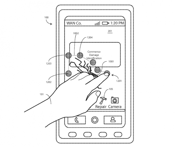 Las imágenes en la patente de Motorola indican que podremos seleccionar a través del sensor táctil la región de la pantalla que esté dañada, con el fin de que el sistema pueda aplicar calor únicamente en esta sección, que no podrá ser tocada durante el proceso.