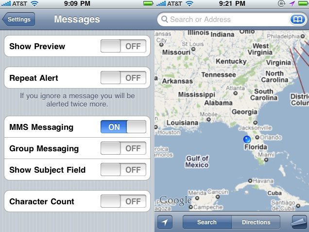 Sobre las preferencias, encontramos que las opciones para el famoso Tethering [usar tu iPhone como modem] han cambiado. Al menos dentro de la red de AT&T con una llamada o entrando a la página web de dicha operadora se puede activar esta función. Esto sin duda son buenas noticias y más cuando se supone que esto estuviera implementado desde el año pasado. También dentro del menú de preferencias podemos activar/desactivar la capacidad de enviar mensajes a un grupo de personas a la vez, hmm! con esto último me vino a la mente la aplicación de Blackberry IM que llevan dichos teléfonos. ¿Qué se traerá Apple bajo la manga?