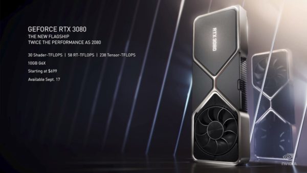 El GeForce RTX 3080 fue anunciado como hasta 2 veces más rápido que el RTX 2080. Con 10 GB de la nueva memoria GDDR6X de alta velocidad que funciona a 19 Gbps, el RTX 3080 puede entregar constantemente 60 cuadros por segundo para juegos con resolución 4K.