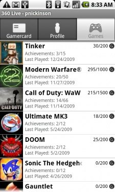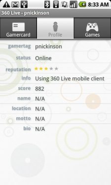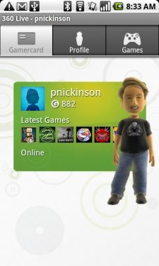 En el Market de Android ya hay disponible una aplicación que permite el acceso a Xbox Live, llamada 360 Live ($2.50, $1.85 euros). El usuario con esta aplicación podrá visualizar el Gamecard, consultar su perfil, historial de juegos, los logros conseguidos, verificar que amigos se encuentran online y enviarles mensajes. Definitivamente una aplicación muy completa para todo aquel que guste de estar al tanto con su red de Xbox.